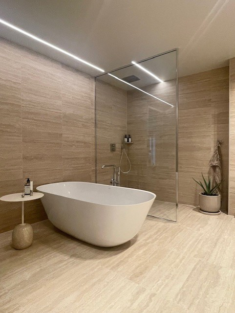 New building in need of improvement in terms of usable space. I redesigned the entire floor plan and facilitated a good lighting plan. Stairwell, fireplace, kitchen and 2 bathrooms were redesigned and produced locally and internationally. Customised solutions such as all wardrobes with folding doors and fittings, French double doors as room dividers, general furniture and smaller details have been a major part of the project's design. Next year's project is the outdoor space.